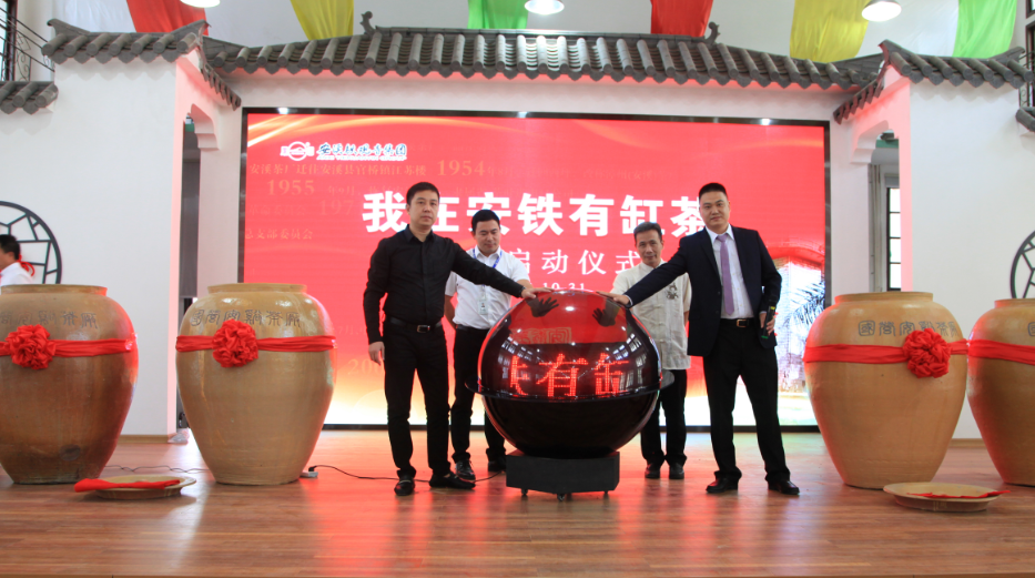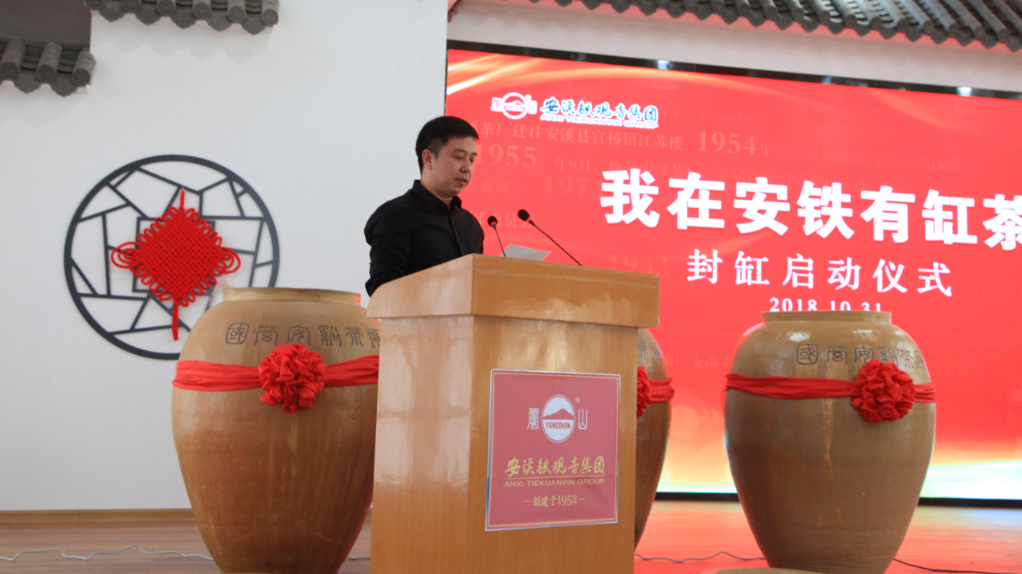 總裁夏建平先生宣布啟動(dòng)儀式正式開始,安鐵集團(tuán)董事長劉紀(jì)恒、副董事長王大慶、總裁夏建平、董事吳厚國、副總裁陳金發(fā)、副總裁呂心舒參加封缸活動(dòng),并在現(xiàn)場各封一缸138Kg的鳳山新茶。總裁夏建平和質(zhì)量總工程師洪加泉先生作為代表進(jìn)行封缸。